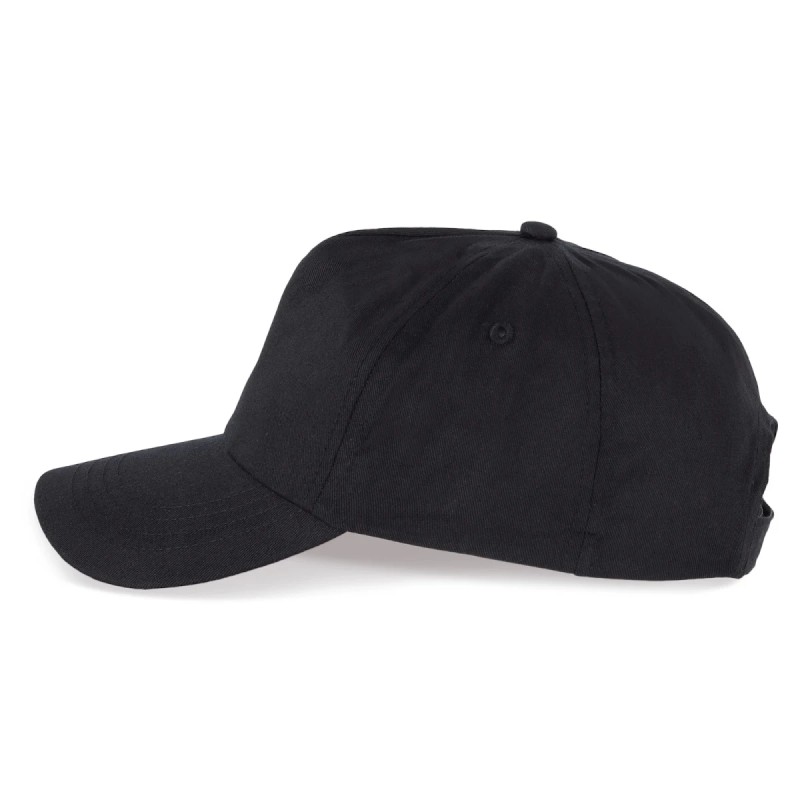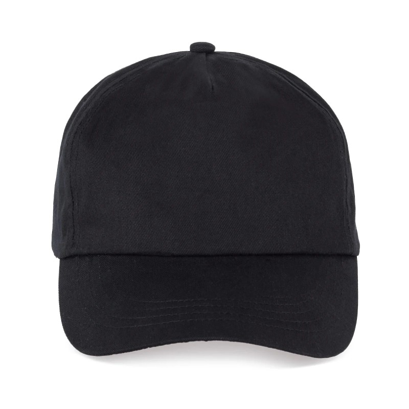 100% coton sergé. Casquette à 5 panneaux avec fermeture velcro.