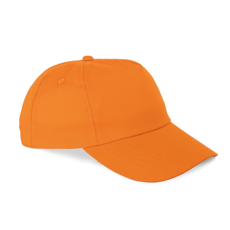 100% coton sergé. Casquette à 5 panneaux avec fermeture velcro.