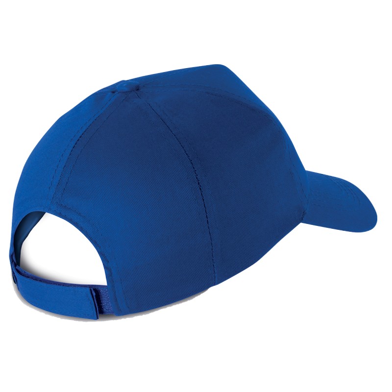 100% coton sergé. 5 panneaux. Fermeture réglable par bande auto-agrippante.