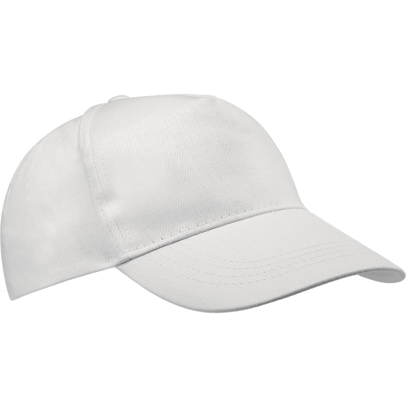 100% coton sergé. 5 panneaux. Fermeture réglable par bande auto-agrippante.