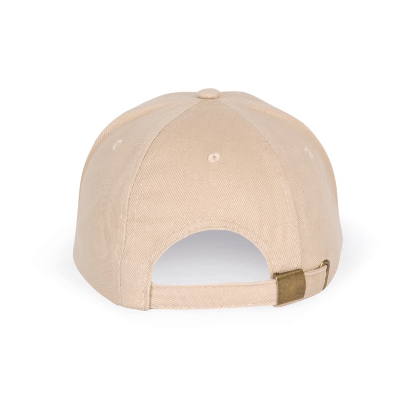 100% coton sergé brossé épais. 6 panneaux. Espace de personnalisation sur panneau avant. Fermeture arrière réglable par boucle métallique.