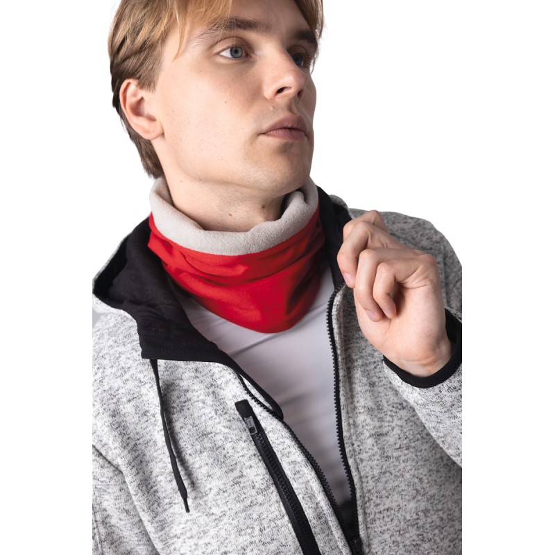 100% polyester. Doublure intérieure en micropolaire afin de protéger et réchauffer le cou.
