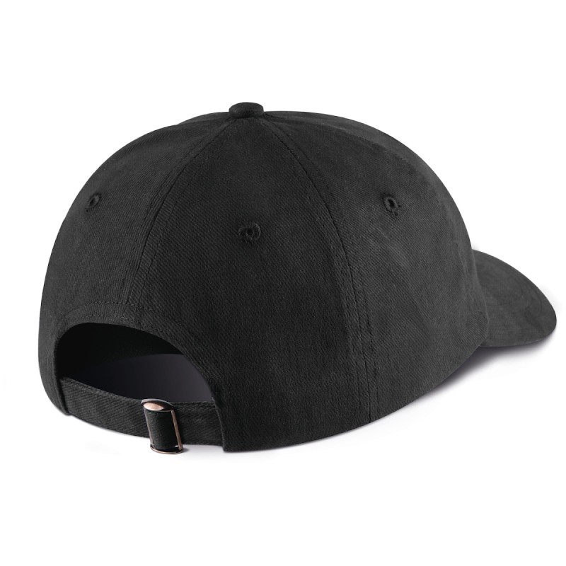 100% coton épais brossé. 6 panneaux. Visière profil bas. Fermeture arrière avec boucle métallique.