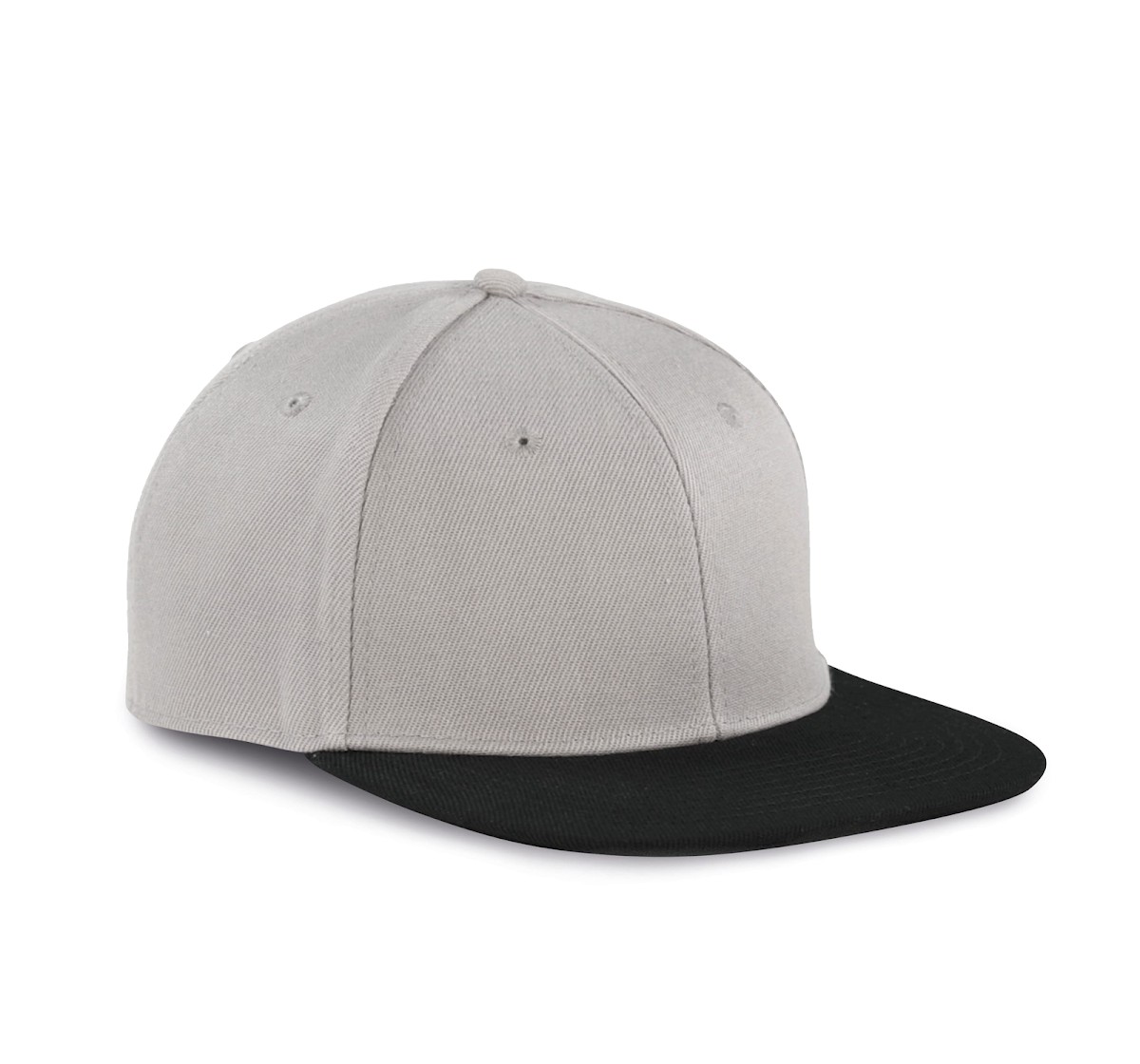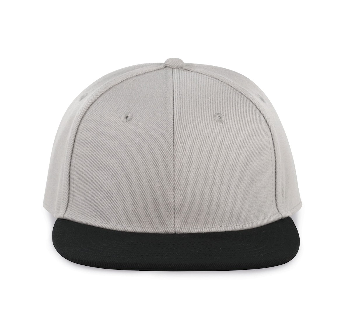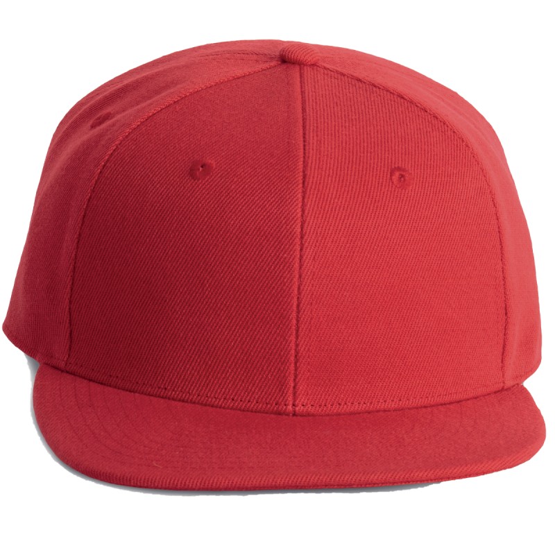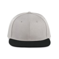 100% polyester. Casquette Snapback 6 panneaux. Visière plate et profil haut. Languette de réglage en plastique.