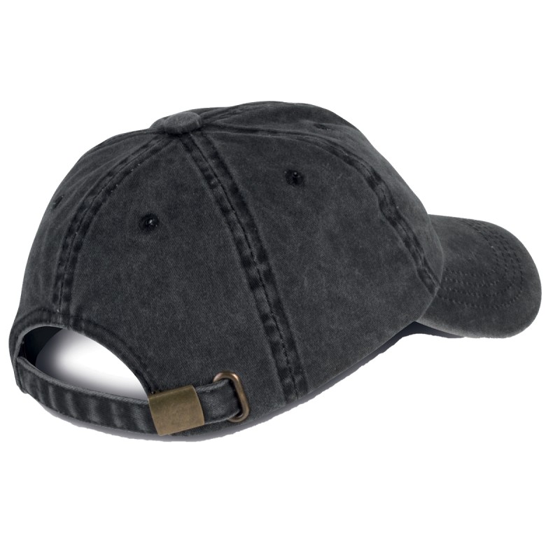 100% coton brossé épais pour effet Vintage. 6 panneaux. Visière profil bas, incurvée. Fermeture arrière réglable par boucle métallique.