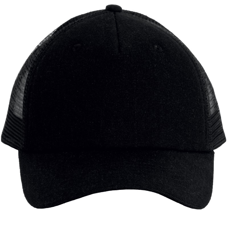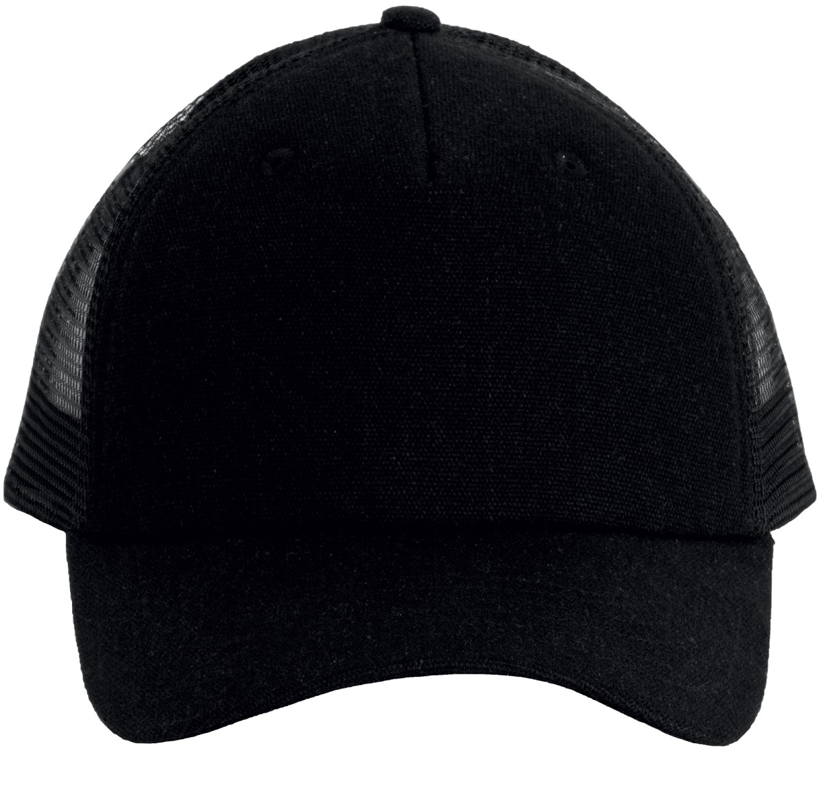 100% coton. Casquette style trucker 5 panneaux. Panneaux avant et visière en coton canvas et maille de filet en polyester. Languette de réglage en plastique.