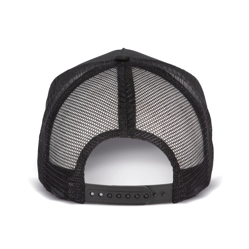 100% coton. Panneau frontal et visière en coton. Panneaux arrières en polyester. Visière pré-incurvée. Fermeture style rétro Snapback.