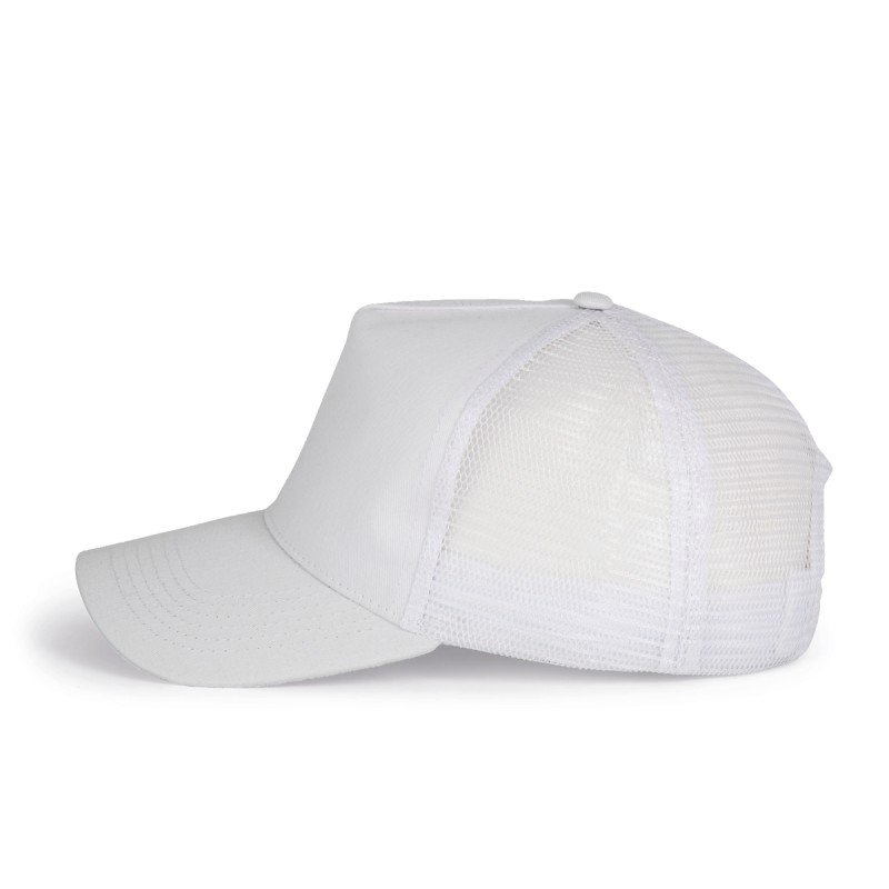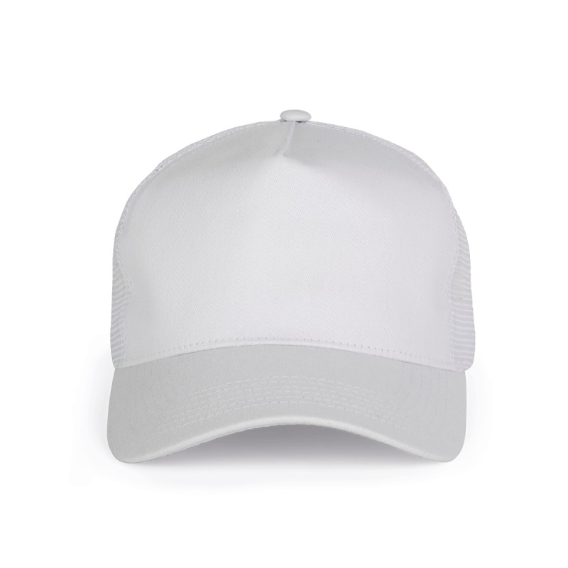 100% coton. Panneau frontal et visière en coton. Panneaux arrières en polyester. Visière pré-incurvée. Fermeture style rétro Snapback.