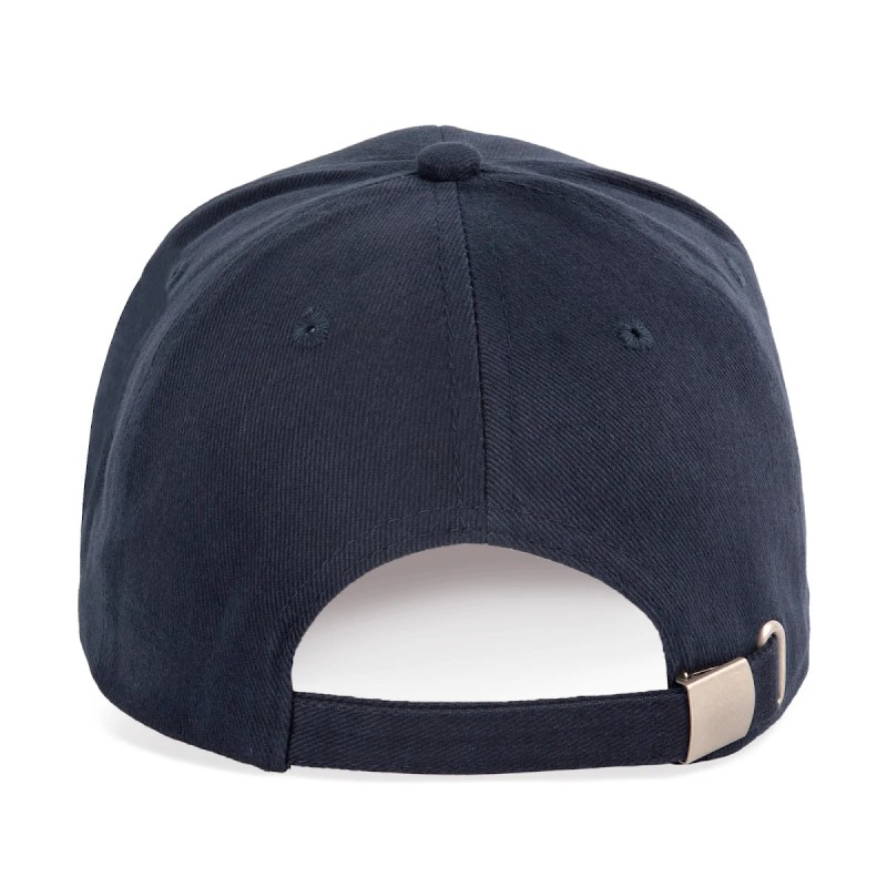 100% coton biologique. Casquette 6 panneaux. Fermeture à boucle métallique réglable.