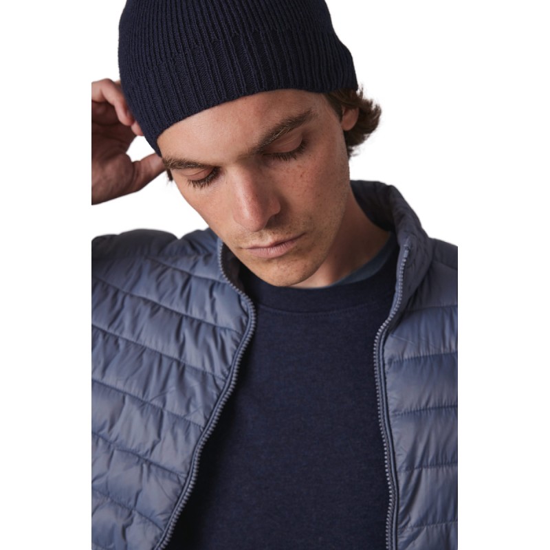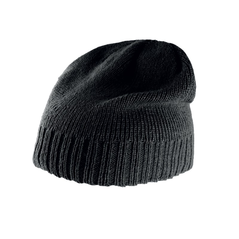 100% acrylique. Bonnet en maille tricotée avec bordure côtelée.