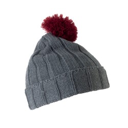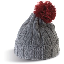 100% acrylique. Bonnet à pompon avec revers.
