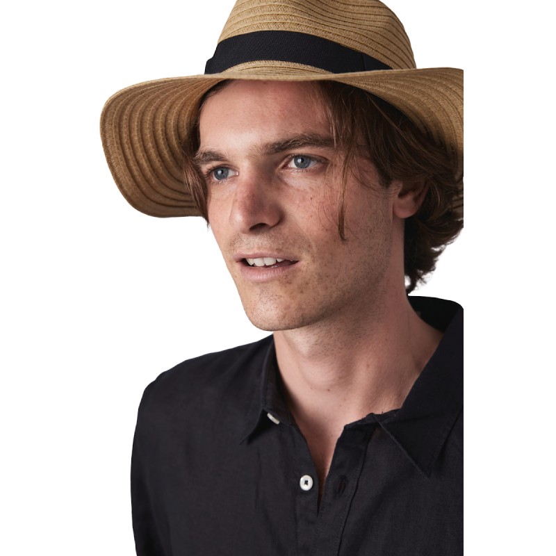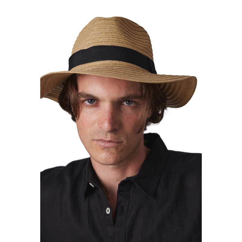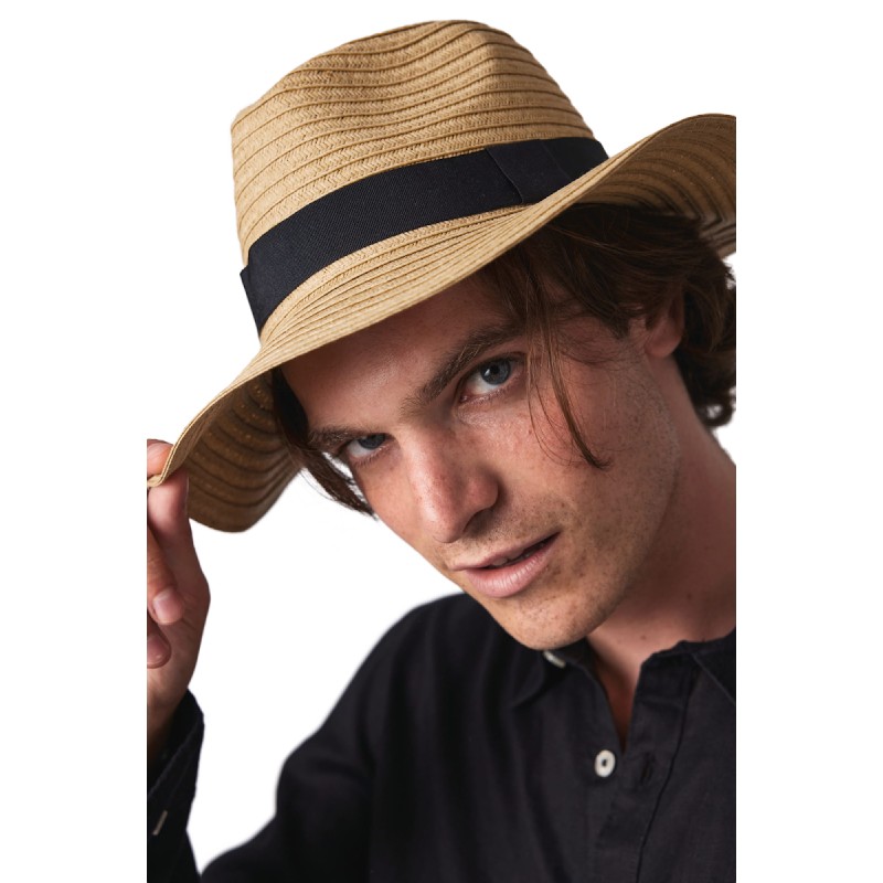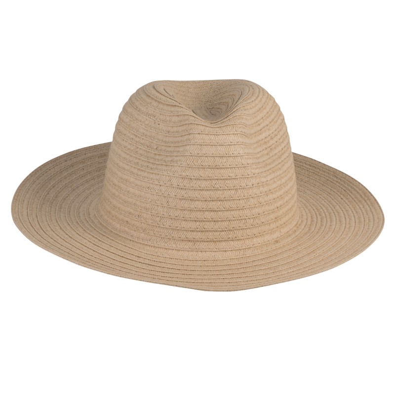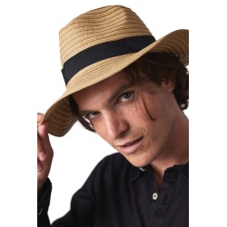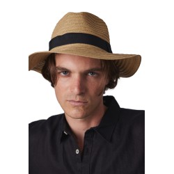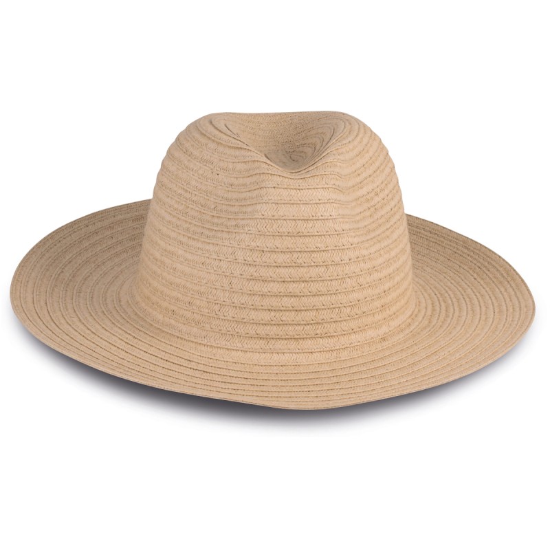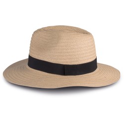 Chapeau en fibre végétale style Borsalino à bords longs de 7 cm. Vendu sans ruban, le ruban adapté KP609 doit être commandé séparément dans la taille correspondante.