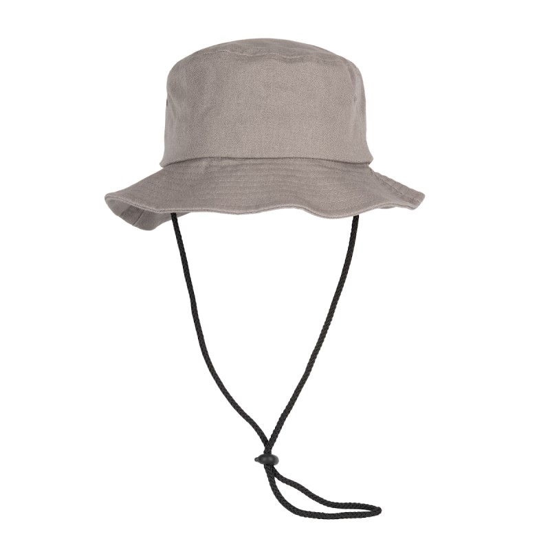 100% coton. Bob style bucket hat en coton. Lacet avec stoppeur. Etiquette de marque Tear Away.