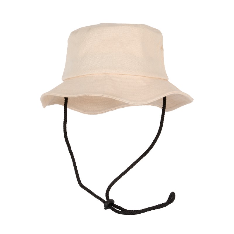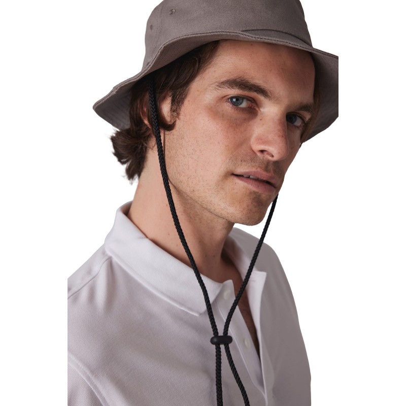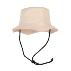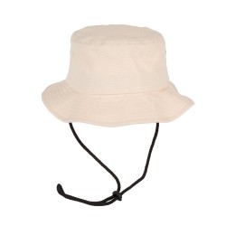 100% coton. Bob style bucket hat en coton. Lacet avec stoppeur. Etiquette de marque Tear Away.