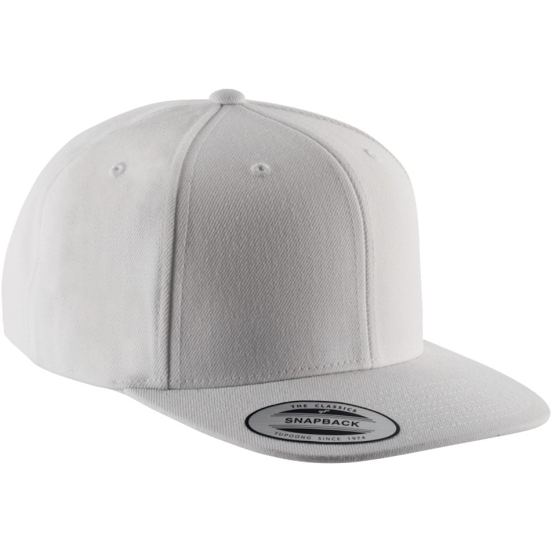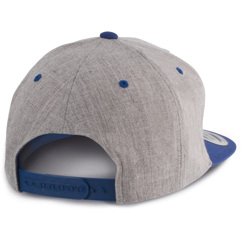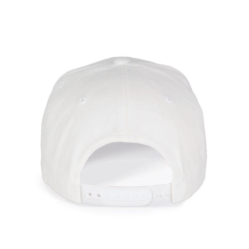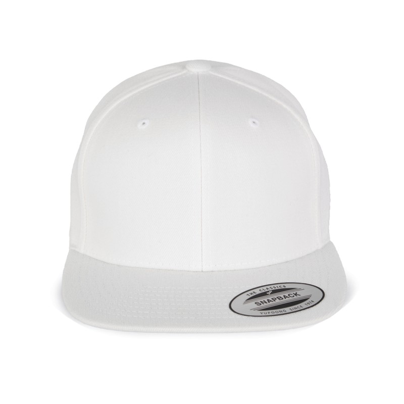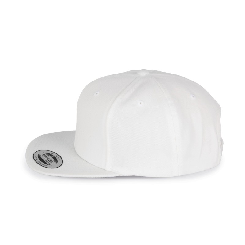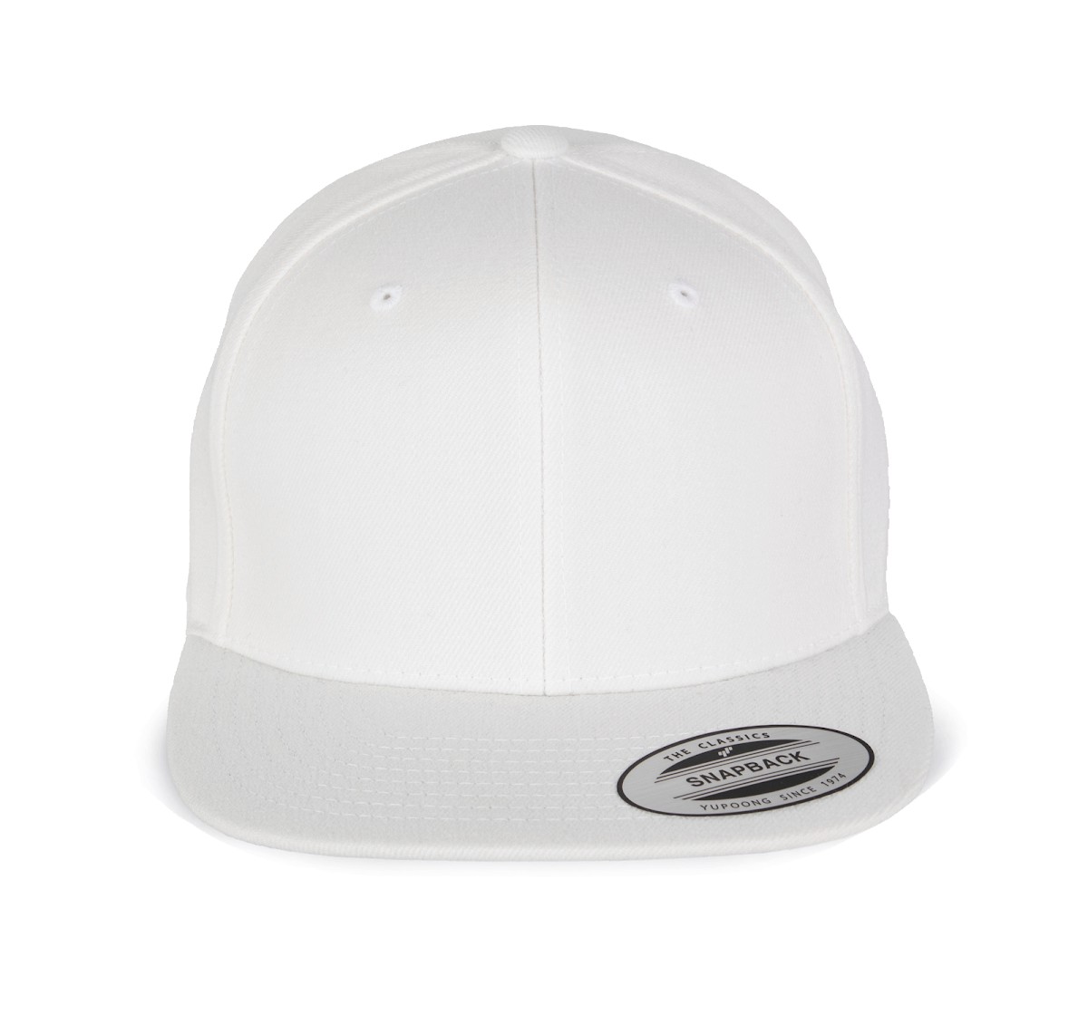 80% acrylique / 20% laine. 6 panneaux. Modèle classique de première qualité. Visière plate, profil haut, panneaux avants rigidifiés. Dessous de visière contrasté de couleur verte. Languette de réglage en plastique.