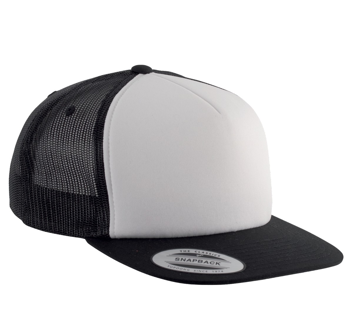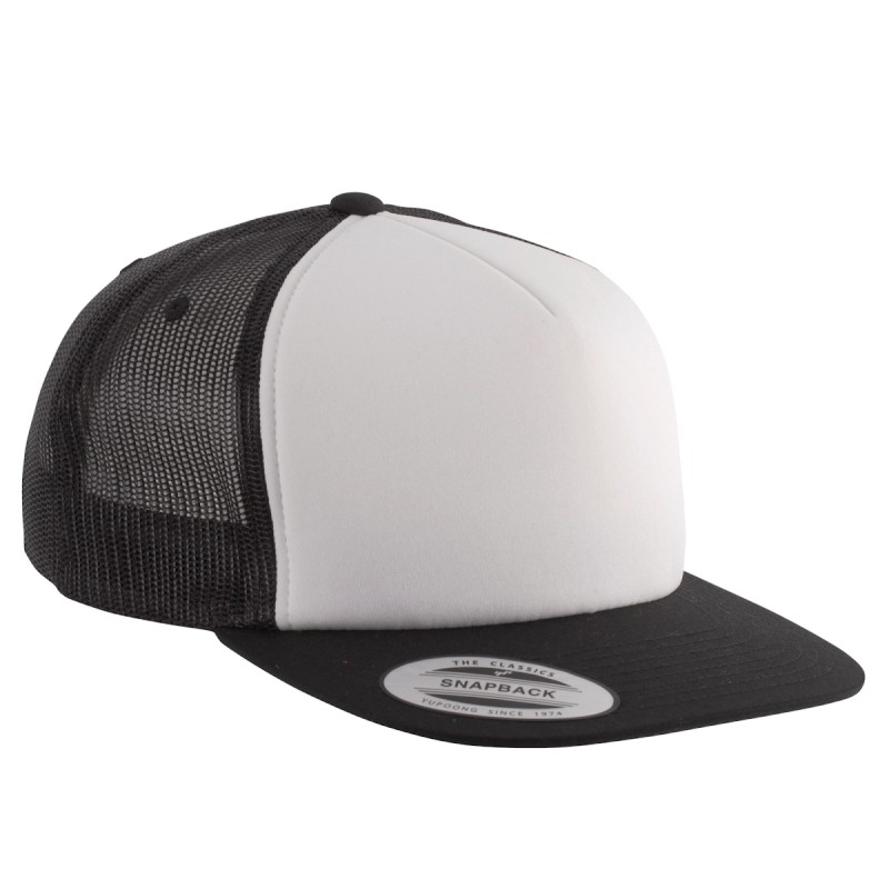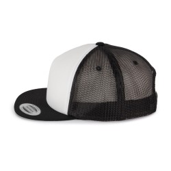 60% coton / 40% polyester. 5 panneaux. Modèle Trucker classique avec mousse de haute qualité. Enduction spongieuse sur panneau avant (ép. 6mm), idéal pour l'impression ou la broderie. Languette de réglage en plastique.