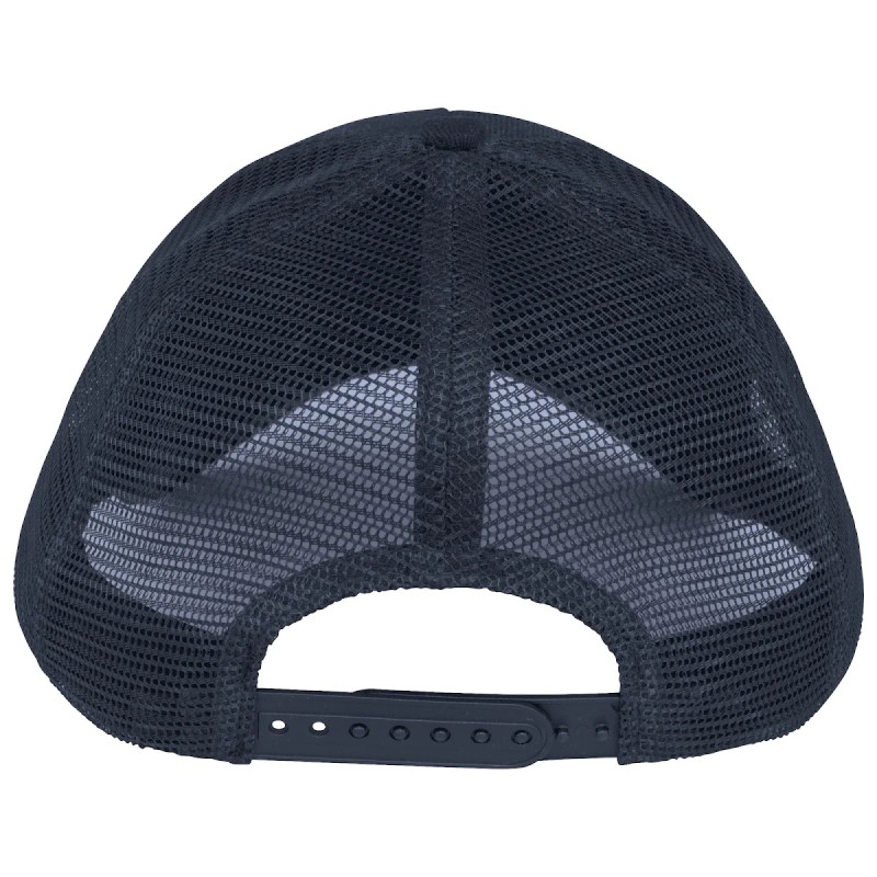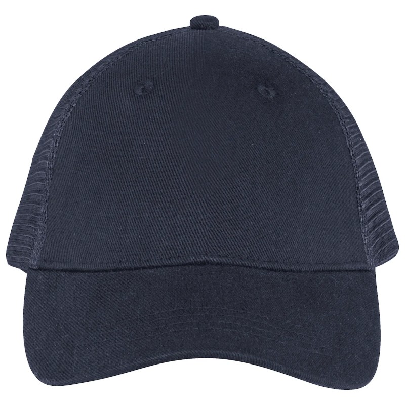 Visière et panneau avant en 100% coton biologique. Panneaux arrières en mesh 100% polyester recyclé post consumer. Tissus en twill et en mesh. Casquette 5 panneaux ajustable avec patte de serrage en plastique recyclé à l'arrière. Visière avec surpiqûres. Panneau avant avec renfort. Biais finition intérieure.