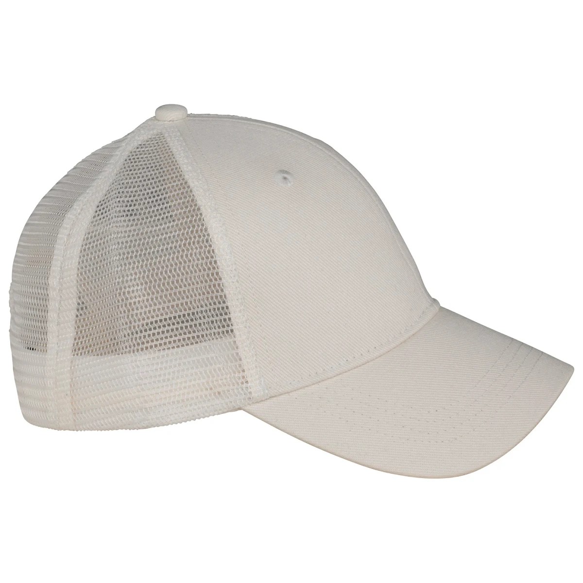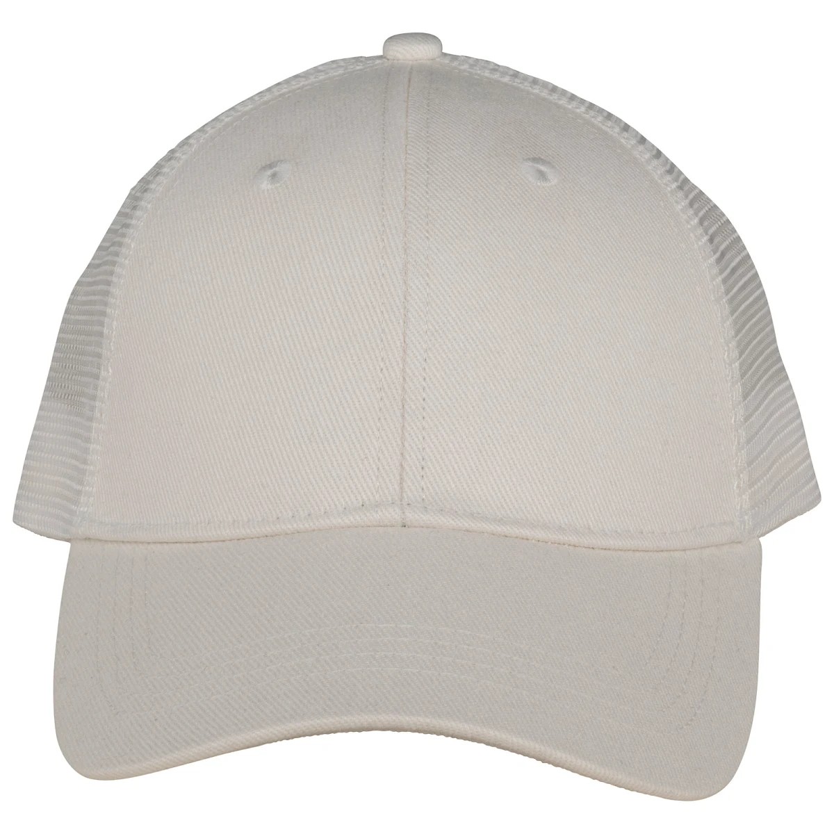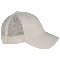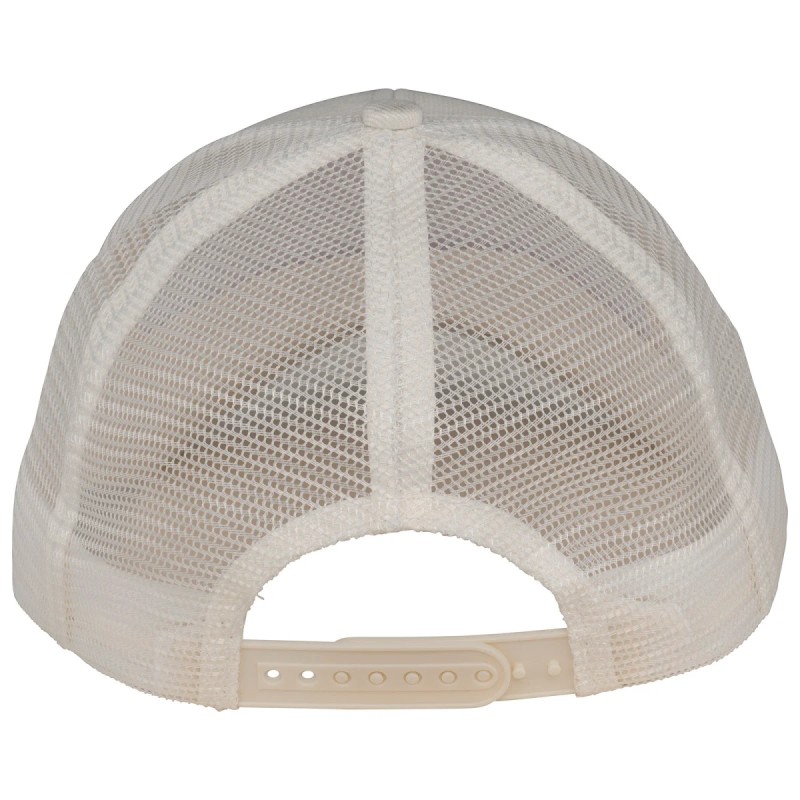 Visière et panneau avant en 100% coton biologique. Panneaux arrières en mesh 100% polyester recyclé post consumer. Tissu en twill et en mesh. Casquette 6 panneaux ajustable avec patte de serrage en plastique recyclé à l'arrière. Visière avec surpiqûres. Panneaux avant avec renfort. Biais finition intérieure.