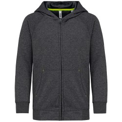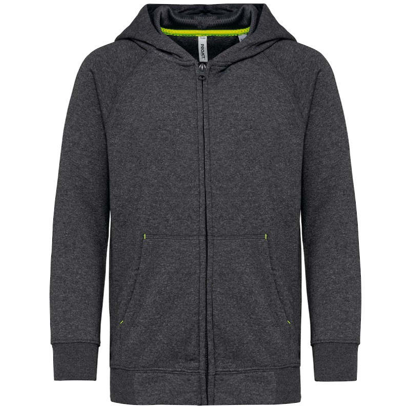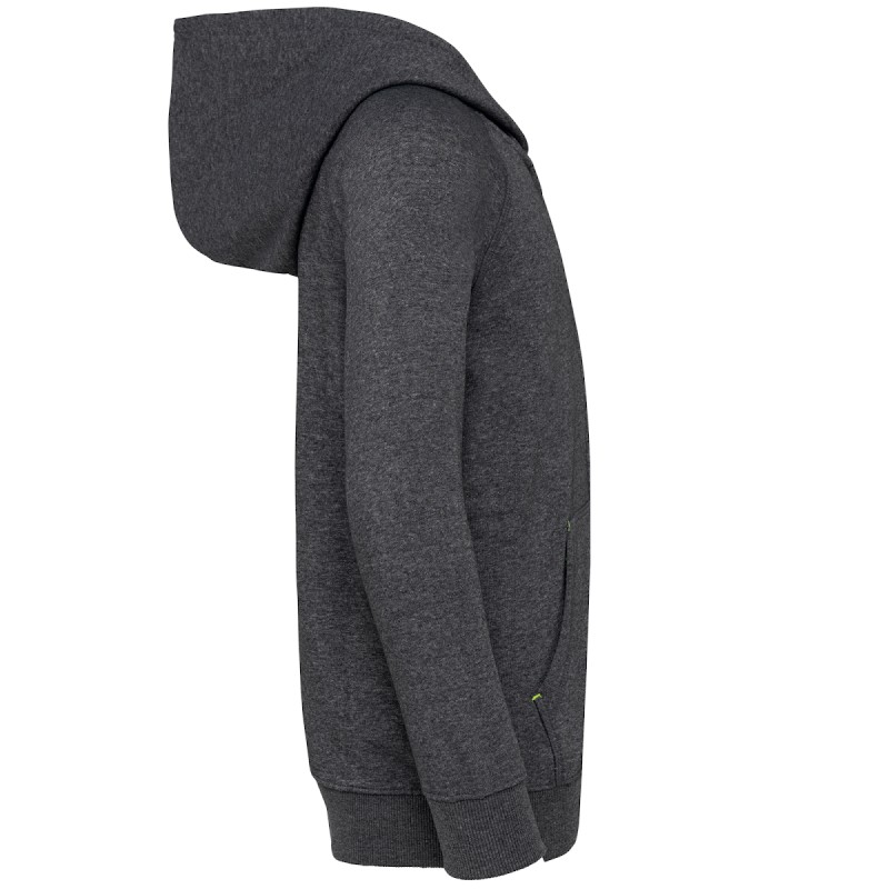 65% polyester/ 35% coton. Molleton gratté. Coton peigné. Fil Vortex. Coupe ajustée. Manches raglan. Fermeture zip nylon. Capuche doublée en maille filet ton sur ton. Bande de propreté à l'intérieur de la capuche et points d'arrêts sur les poches en coloris fluorescent. Poches kangourou avec 1 poche pour téléphone fluorescente. Poignets et bas de vêtement en bord-côte double épaisseur 2x2. Finition demi-lune encolure au dos pour faciliter la personnalisation de marque à l'intérieur. Etiquette de marque Tear-away.