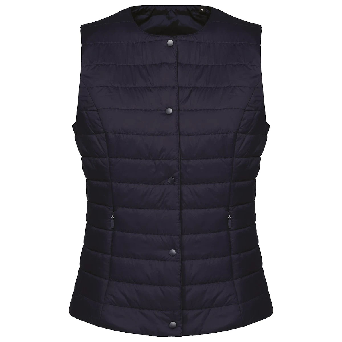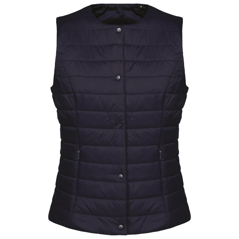 100% polyamide. Coupe ajustée. Rembourrage intérieur en Thinsulate™. Découpe avec 2 poches côtés et zip invisible. Fermeture boutons pressions ton sur ton. Zip de personnalisation intérieur côté gauche. Gilet sans manche léger afin de pouvoir le porter sous une veste. Pas d'étiquette de marque, uniquement une puce de taille pour faciliter la personnalisation.