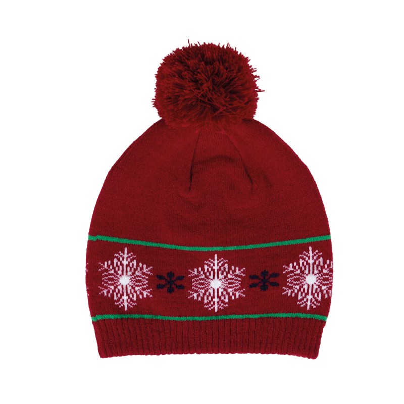 95% acrylique / 5% élasthanne. Bonnet avec pompon.