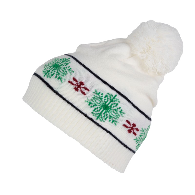 95% acrylique / 5% élasthanne. Bonnet avec pompon.