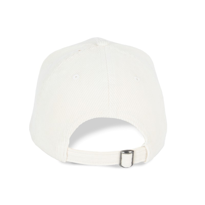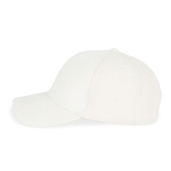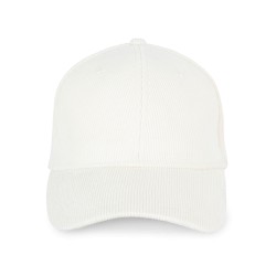 100% coton biologique. Tissu en velours côtelé. 6 panneaux. Patte ajustable en matière principale et boucle de serrage en métal recyclé. Visière avec surpiqûres. Biais finition intérieure. Panneau devant avec renfort