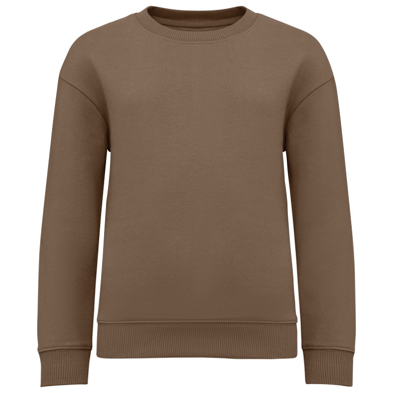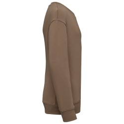 85% coton biologique / 15% polyester recyclé post-consumer. Coupe oversize à épaules tombantes. Lavé aux enzymes. Molleton gratté 3 fils LSF (Low Shrinkage Fleece : molleton pré-rétréci). Demi-lune au dos. Bord côte col, bas de manches et de vêtement 2 x 1. Bande de propreté en chevrons ton sur ton en finition intérieur de col.