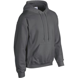 50% coton / 50% polyester. Molleton interieur gratté pré-rétreci. Fil "Air-Jet" pour une surface plus douce et anti-boulochage. Manches droites. Capuche doublée et cordons assortis. Coupe classique.