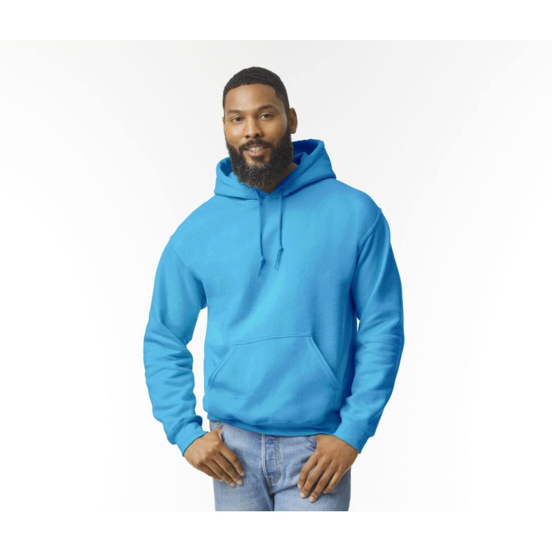 50% coton / 50% polyester. Molleton interieur gratté pré-rétreci. Fil "Air-Jet" pour une surface plus douce et anti-boulochage. Manches droites. Capuche doublée et cordons assortis. Coupe classique.
