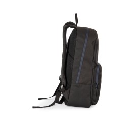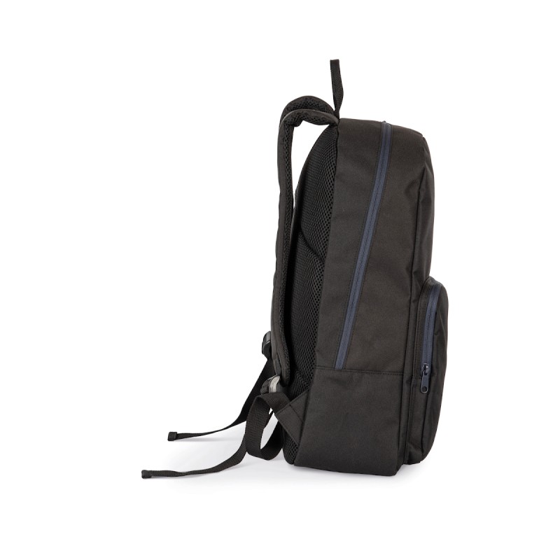 100% polyester. Sac à dos classique en polyester avec fermetures contrastées. Compartiment principal matelassé porte-ordinateur et tablette jusqu’à 15 pouces. Grande poche et panneau sur le devant idéal pour tous types de personnalisation. Dos et bretelles respirants et matelassés pour un confort maximum.