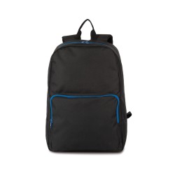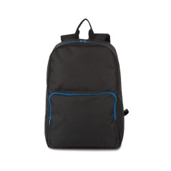 100% polyester. Sac à dos classique en polyester avec fermetures contrastées. Compartiment principal matelassé porte-ordinateur et tablette jusqu’à 15 pouces. Grande poche et panneau sur le devant idéal pour tous types de personnalisation. Dos et bretelles respirants et matelassés pour un confort maximum.