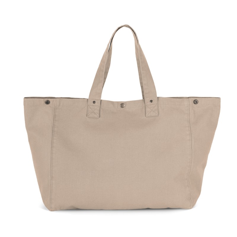 100% coton. Les produits délavés sont uniques et peuvent présenter de légères variations de couleur. Poche intérieure pour clés et téléphone. Grand soufflet pouvant être fermé par bouton-pression.