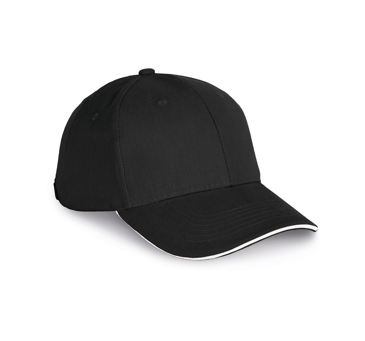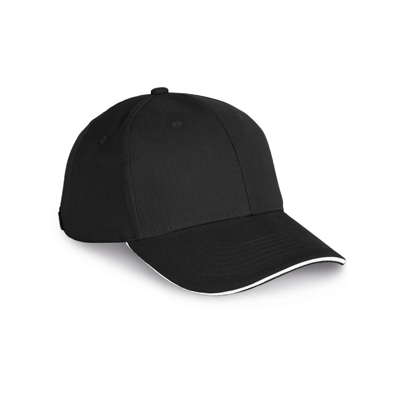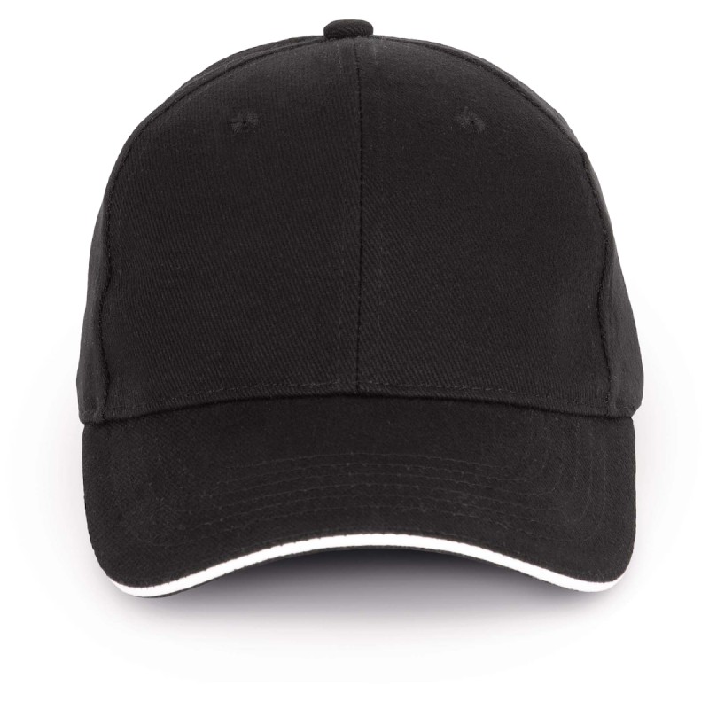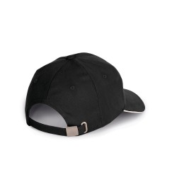 100% coton biologique. Casquette 6 panneaux avec sandwich contrasté de couleur. Fermeture réglable par boucle métallique.