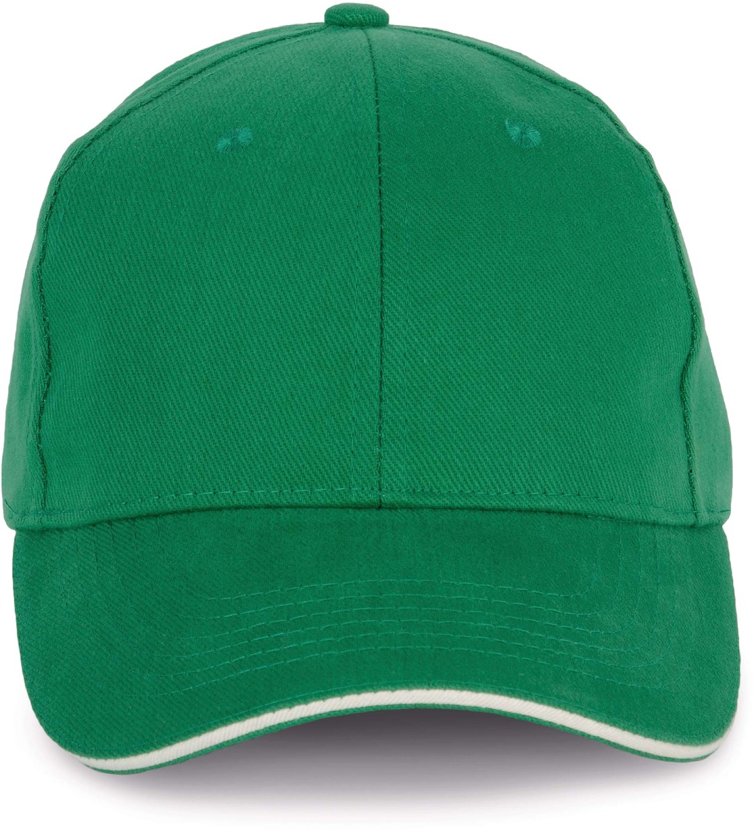 100% coton biologique. Casquette 6 panneaux avec sandwich contrasté de couleur. Fermeture réglable par boucle métallique.