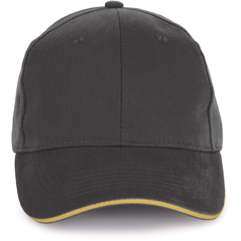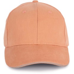 100% coton biologique. Casquette 6 panneaux avec sandwich contrasté de couleur. Fermeture réglable par boucle métallique.