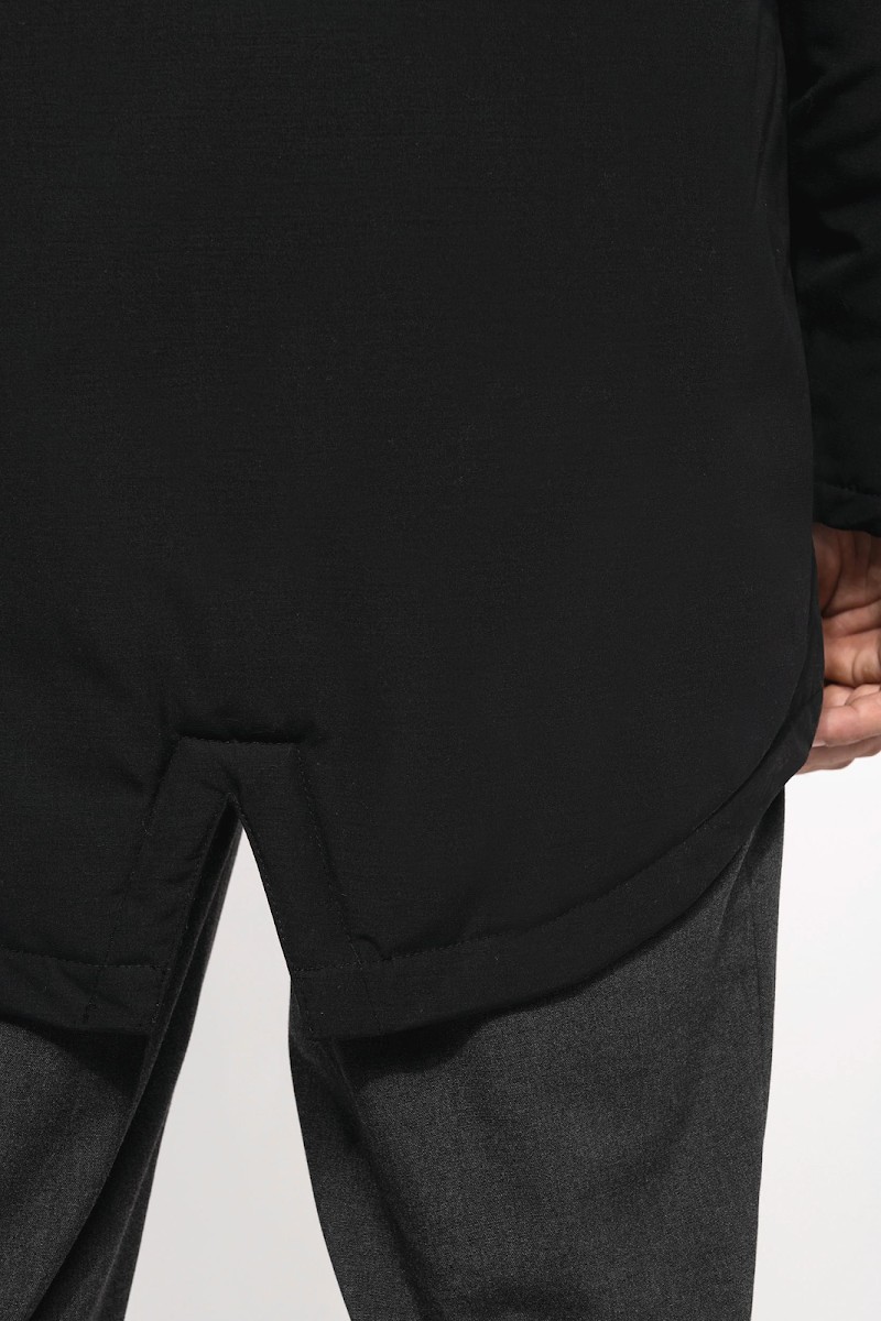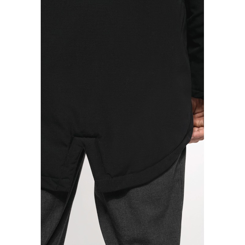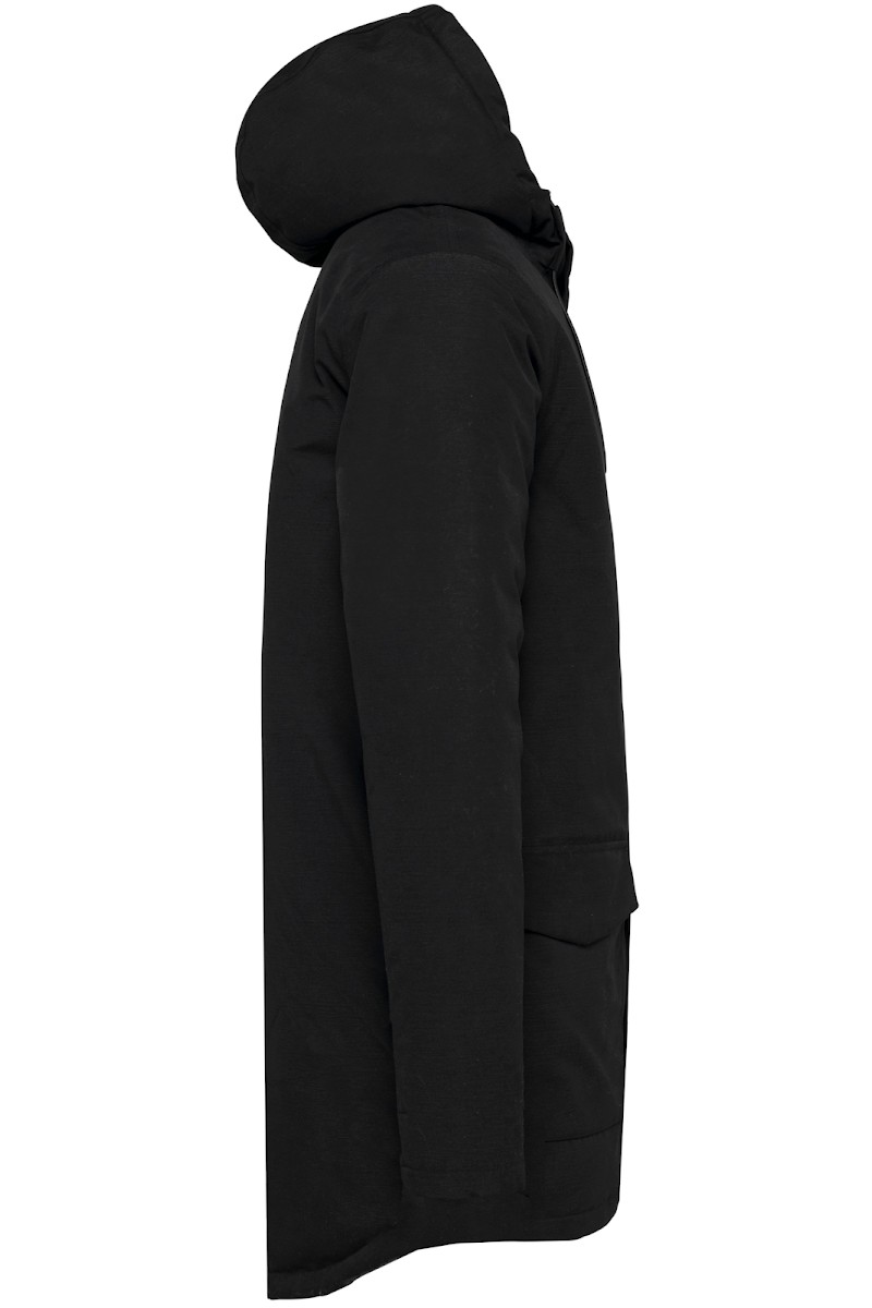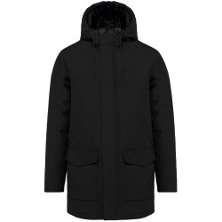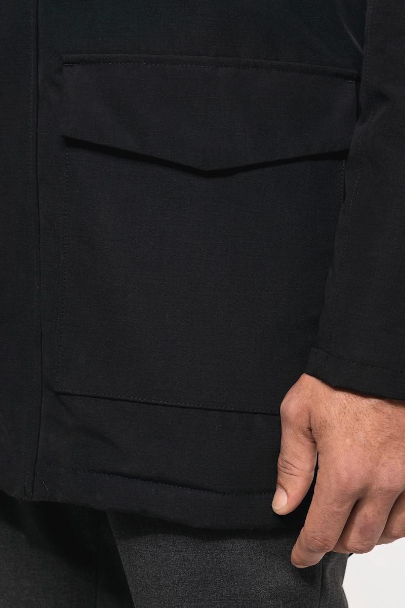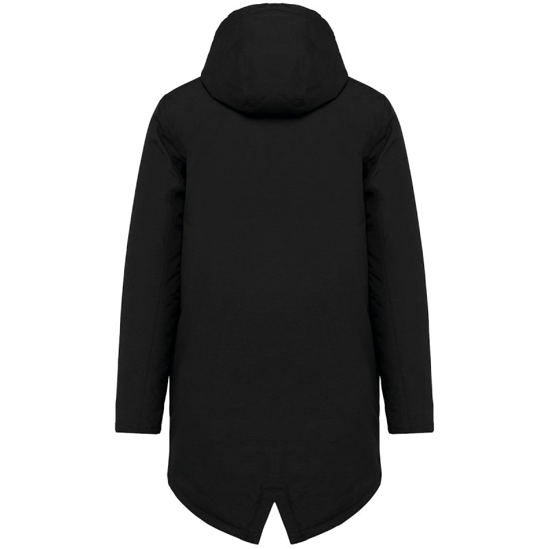 100% polyester ottoman. Doublure 100% polyester taffeta rembourrage en Thinsulate™. Coutures thermosoudées. Ce vêtement imperméable et thermorégulateur permet un bon maintien de la chaleur. Respirant 5000 g/m²/24 h et imperméable 8000 mm. Fermeture zippée avec zip métal noir et rabat à boutons pressions, cache-zipper. Capuche 3 panneaux doublée ajustable avec cordons de serrage et stopper en métal. Deux poches doubles devant une avec rabat et bouton à pression l'autre latérale en double ouverture. 3 poches intérieures dont une poitrine droite fermée avec bouton pression. Fente d'aisance au bas du dos. Zip de personnalisation intérieur bas de vêtement et côté cœur. Patch de personnalisation intérieur dans le haut du dos. Loop intérieur col afin de pouvoir accrocher le vêtement. Pas d'étiquette de marque, uniquement une puce de taille pour faciliter la personnalisation.
