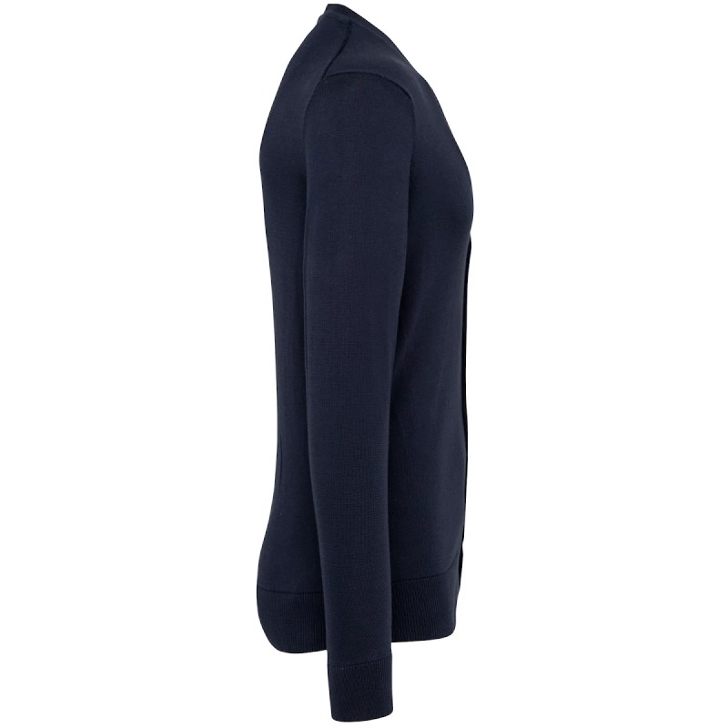 100% coton Supima®. Coton peigné. Jauge 12. Tissu de qualité supérieure. Fully-fashioned : tricoté dans la forme et assemblé sur machine de remaillage. Encolure, poignets et bas du vêtement rib 1 x 1. Boutonnière avec boutons plastique. Ton sur ton.