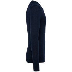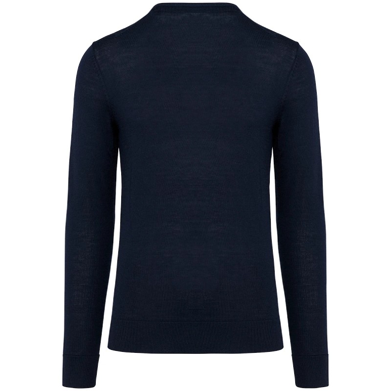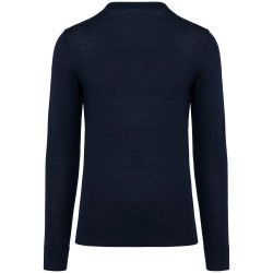 100% Mérinos. Laine extra-fine peignée. Jauge 14. Fully-fashioned : tricoté dans la forme et assemblé sur machine de remaillage. Encolure, poignets et bas du vêtement rib 1 x 1.