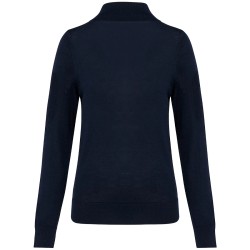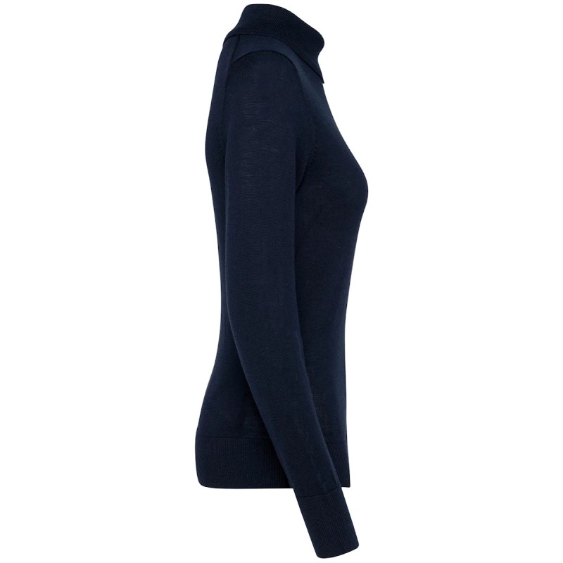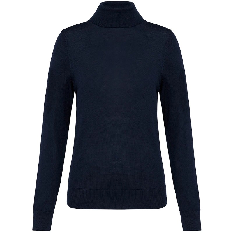 100% Mérinos. Laine extra-fine peignée. Jauge 14. Fully-fashioned : tricoté dans la forme et assemblé sur machine de remaillage. Col roulé, poignets et bas du vêtement rib 1 x 1.