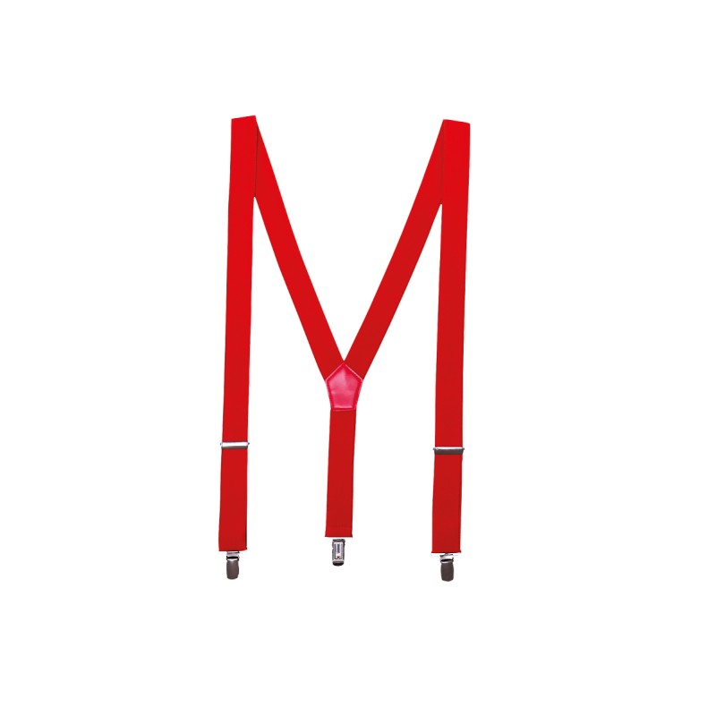Bretelles en Y dans le dos, tissu élastique extensible pour le confort et le style. Bretelle de 3 cm de large. Deux clips métalliques anti-glissement sur l'avant pour se fixer au pantalon. Un clip dans le dos. Boucles autobloquantes métalliques pour l'ajustage, ce qui en fait un article à taille unique.