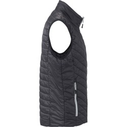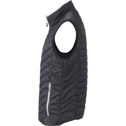 Bodywarmer matelassé Homme Sans capuche Fermeture zippée contrastée 2 poches latérales zippées 2 poches intérieures zippées Ouverture jeannette pour faciliter le marquage 100 % polyamide Doublure: 100% polyester Rembourrage sorona AURA sorona® AURA : Fibres issues de ressources renouvelables offrant une respirabilité excellente, un confort léger et une efficacité optimale dans le maintien de la chaleur.