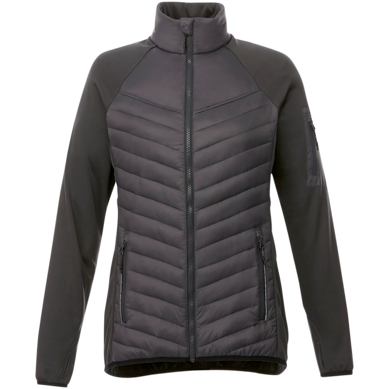 La veste isolée hybride Banff pour femme est la fusion parfaite du style et de la performance. Le rabat-tempête intérieur empêche le vent de passer à travers la veste, et l'ourlet arrière rabattu ajoute une touche de couverture supplémentaire pour plus de chaleur. L'élastique de couleur contrastée ajoute une touche de style tout en garantissant un bon maintien. Le tissu tissé 380T en nylon (38 g/m2) est déperlant et imperméable à la pluie. Le tissu de contraste est un tricot interlock en polyester et élasthanne (245 g/m2), qui apporte souplesse et confort. L'isolation en faux duvet de polyester procure une chaleur légère, parfaite pour les journées fraîches. Cette veste est conçue avec une forme ajustée pour un look féminin.