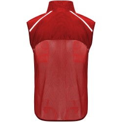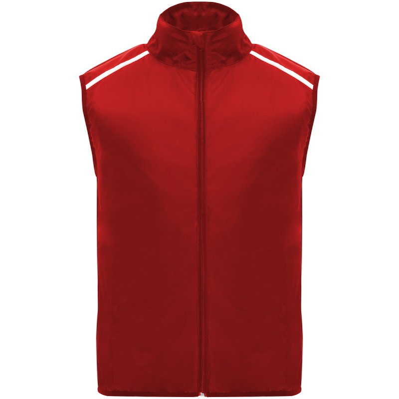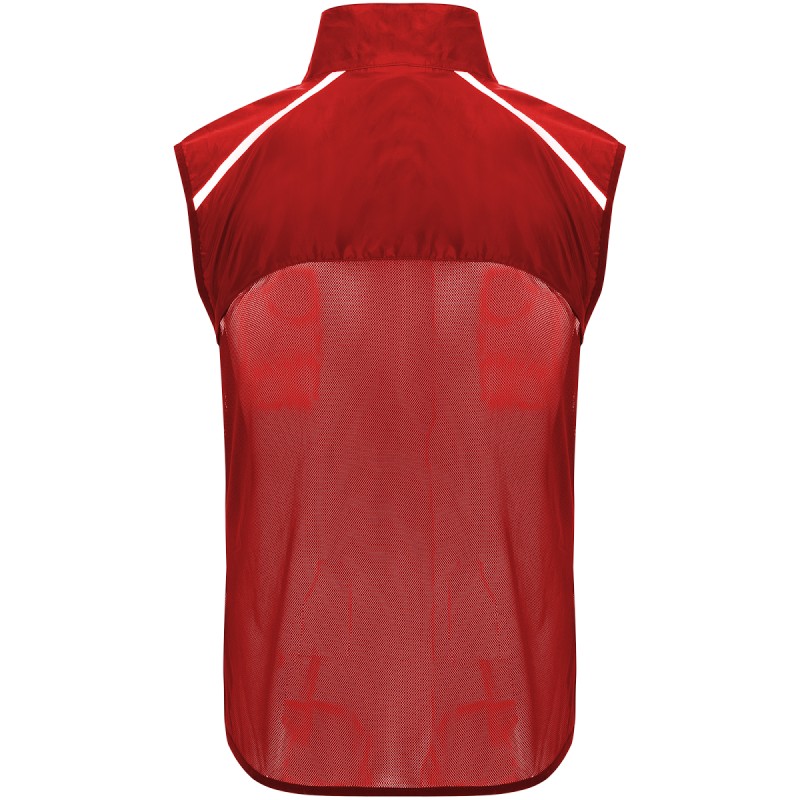 Coupe-vent et respirant. Fermeture à glissière sur le devant avec protège-menton assorti. Liseré élastique à l’emmanchure et au bas. Partie inférieure du dos en tissu microperforé. Détails fluorescents sur le dessus, le devant et dans le dos. Pochette avec lanière élastique pour ranger le gilet et le porter au poignet. Étiquette détachable.