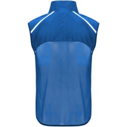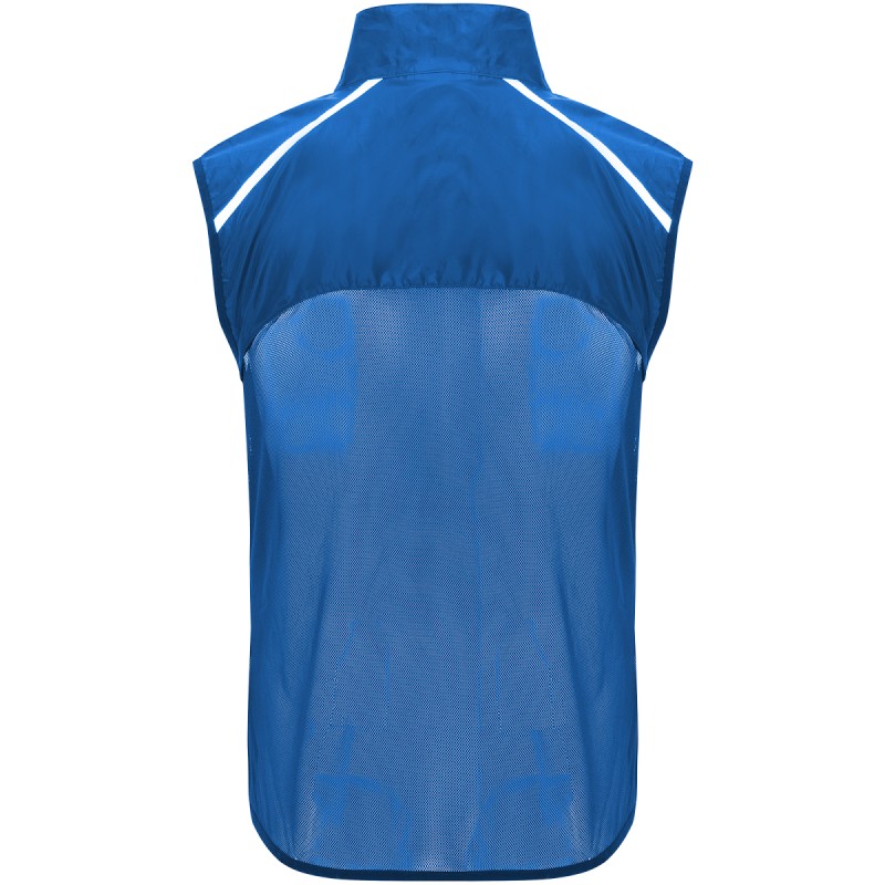 Coupe-vent et respirant. Fermeture à glissière sur le devant avec protège-menton assorti. Liseré élastique à l’emmanchure et au bas. Partie inférieure du dos en tissu microperforé. Détails fluorescents sur le dessus, le devant et dans le dos. Pochette avec lanière élastique pour ranger le gilet et le porter au poignet. Étiquette détachable.