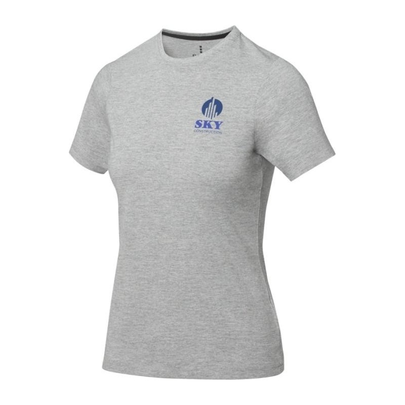 Le t-shirt à manches courtes pour femmes Nanaimo en coton 160 g/m² est parfait pour toutes les occasions et constitue un complément confortable à toute garde-robe. Le coton ringspun permet d'obtenir un fil plus solide et plus lisse, ce qui se traduit par un tissu plus durable qui garantit un marquage de haute qualité. Il a une forme féminine et des coutures latérales pour assurer un bon ajustement, tandis que le marquage Elevate imprimé dans l'encolure ajoute à son confort général. Les épaules renforcées garantissent également un ajustement continu, même après une utilisation prolongée.