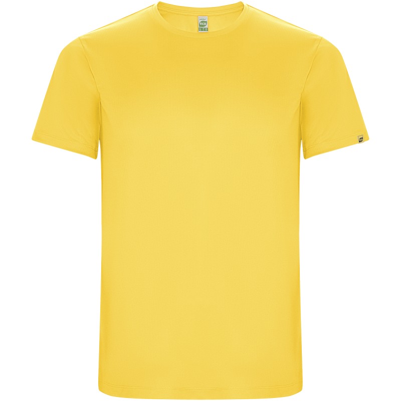 T-shirt technique à manches courtes en polyester recyclé CONTROL-DRY. Col rond avec coutures recouvertes assorties. Étiquette logo ECO sur la manche. Emballage en matière recyclée. Étiquette ECO détachable. Emballage en matière recyclée. Tissu technique. Le mannequin mesure 115 cm et porte la taille 5/6.