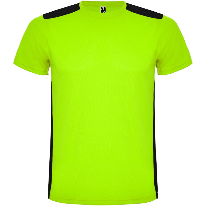 Tissu technique et respirant, facile à sécher. Col ras-du-cou. Confectionné avec deux tissus en polyester sur le dos et les épaules. Tissu œil d’oiseau à l’avant et tissu en maille 3D respirant à l’arrière. Tissu conçu pour absorber l’humidité. Point arrière décoratif en zigzag sur les côtés et les épaules. Patron du dos légèrement plus long. Étiquette détachable.