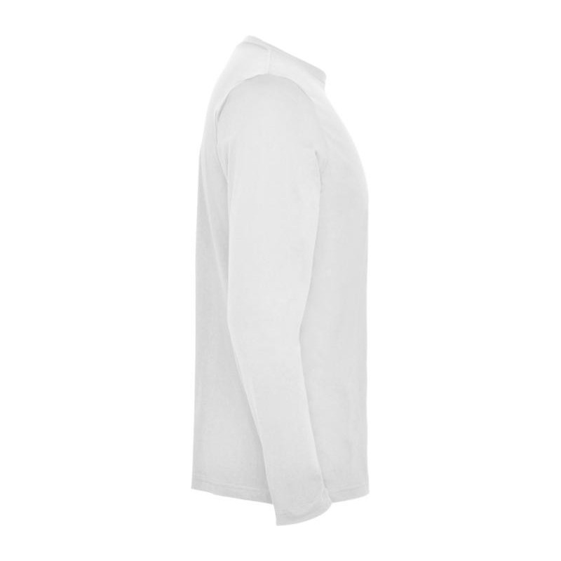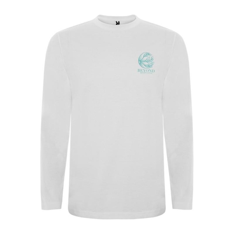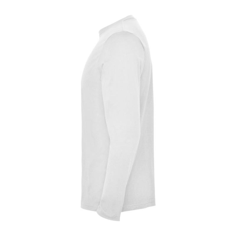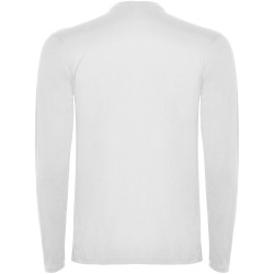 T-shirt à manches longues en tissu tubulaire et col rond 4 épaisseurs. Coutures recouvertes renforcées au col et aux épaules. Pas de manchettes. Étiquette détachable. Conception tubulaire en tailles adultes et coutures latérales en tailles enfants. Le mannequin mesure 185 cm et porte la taille L.