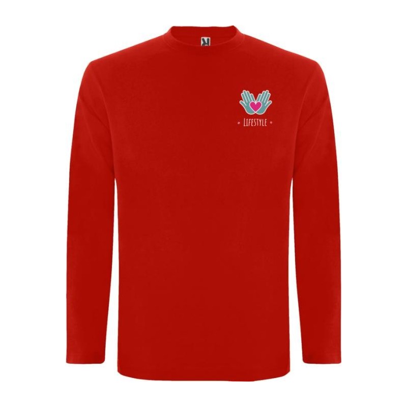 T-shirt à manches longues en tissu tubulaire et col rond 4 épaisseurs. Coutures recouvertes renforcées au col et aux épaules. Pas de manchettes. Étiquette détachable. Conception tubulaire en tailles adultes et coutures latérales en tailles enfants. Le mannequin mesure 185 cm et porte la taille L.